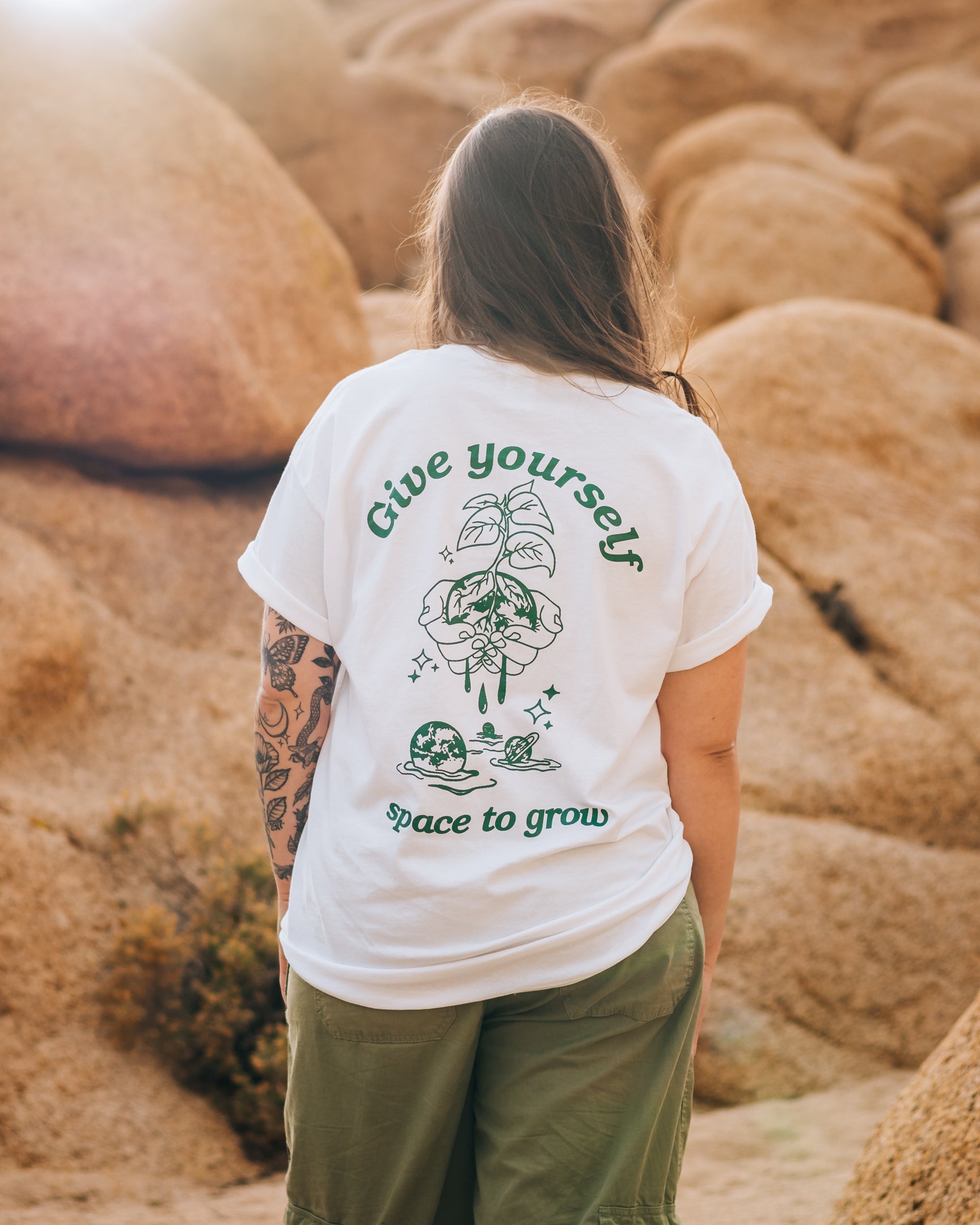 A classic heavyweight fit and made from 100% preshrunk cotton. Get growing in this comfy white tee. :)